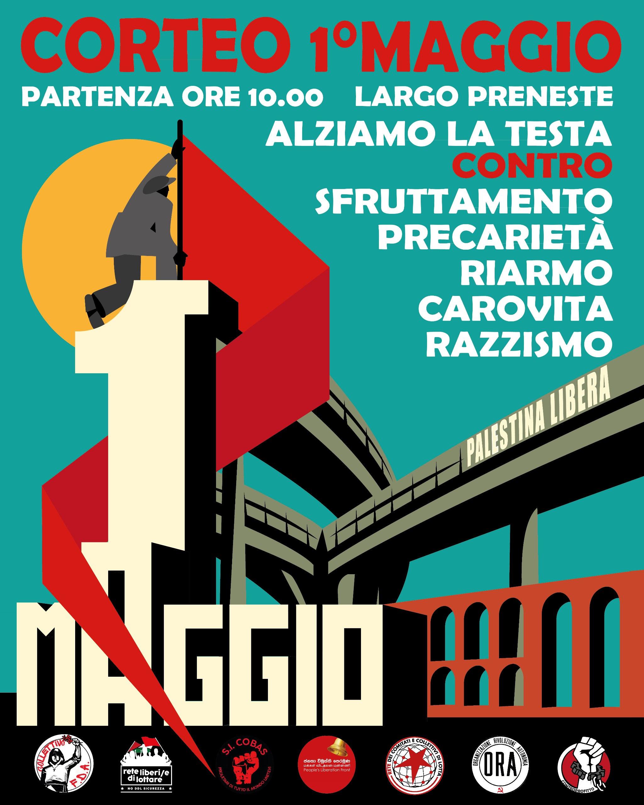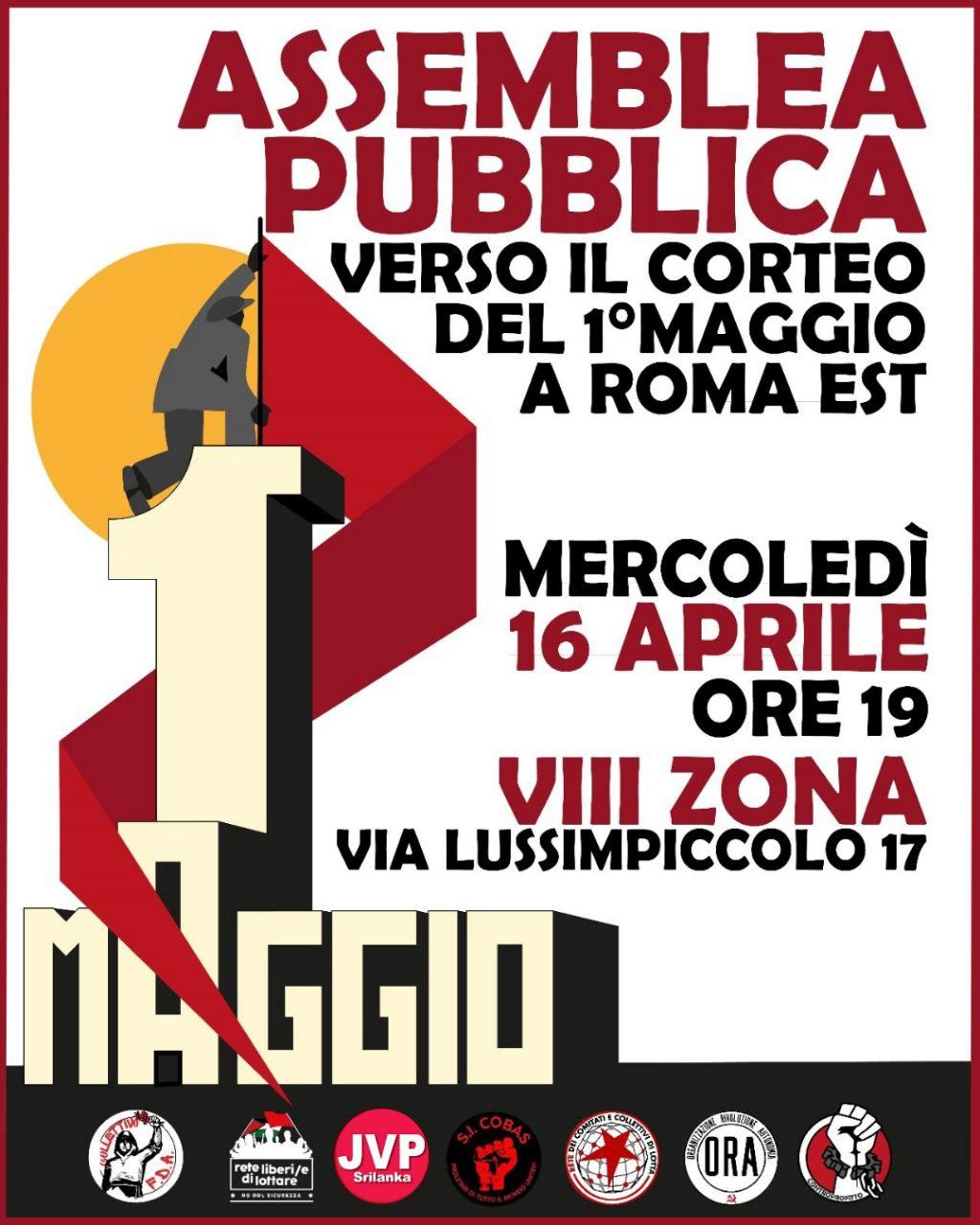 Propaganda anno: 2025 volantino distribuito il 22 febbraio manifesto locandina assemblea di presentazione piattaforma congiunta per un 1° maggio di lotta a Roma Est
